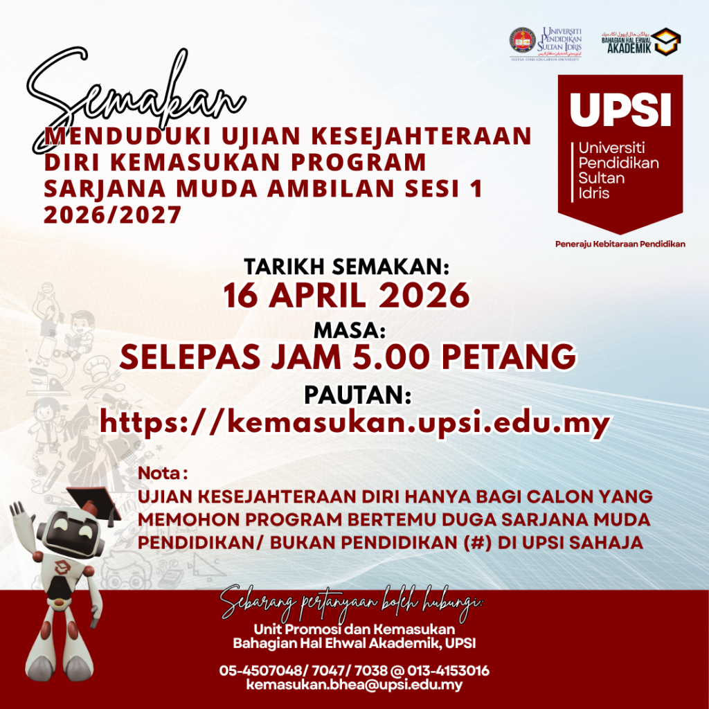 UPSI | Bahagian Hal Ehwal Akademik, 35900 Tanjong Malim, Perak Darul Ridzuan